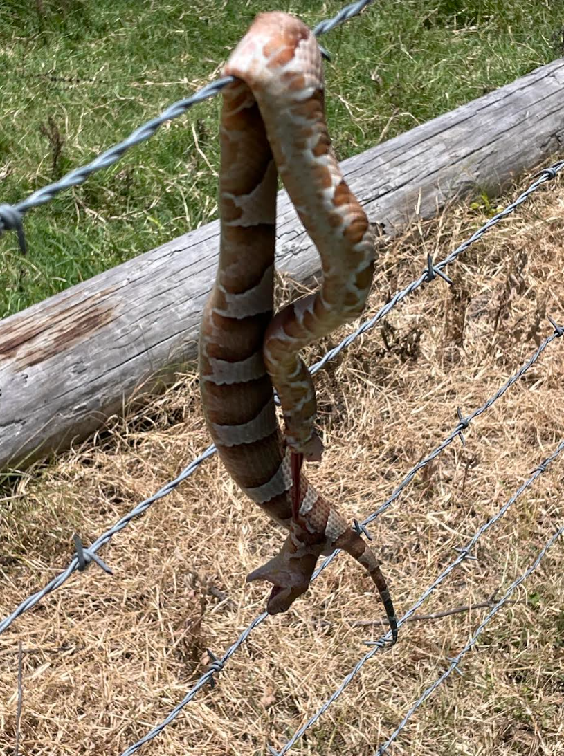 Look at this very large copperhead killed by Al Gross on back porch. They are out and about! Thanks for sharing!